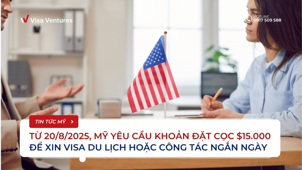 Từ ngày 20/8/2025, Bộ Ngoại giao Hoa Kỳ chính thức triển khai Chương Trình Visa Bond của Mỹ – chương trình thí điểm kéo dài 12 tháng. Theo đó, một số công dân từ các quốc gia có tỷ lệ ở lại quá hạn visa cao khi xin visa du lịch (B-2) hoặc công tác…