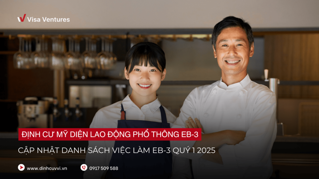 Cùng Visa Ventures khám phá những cơ hội tuyển dụng việc làm EB-3 mới nhất trong Quý 1/2025. Đặc biệt, một vài vị trí công việc trong chương trình định cư Mỹ diện EB-3 có những ưu điểm nổi bật: Không yêu cầu bằng cấp. Không yêu cầu Tiếng Anh. Không cần chứng minh tài…