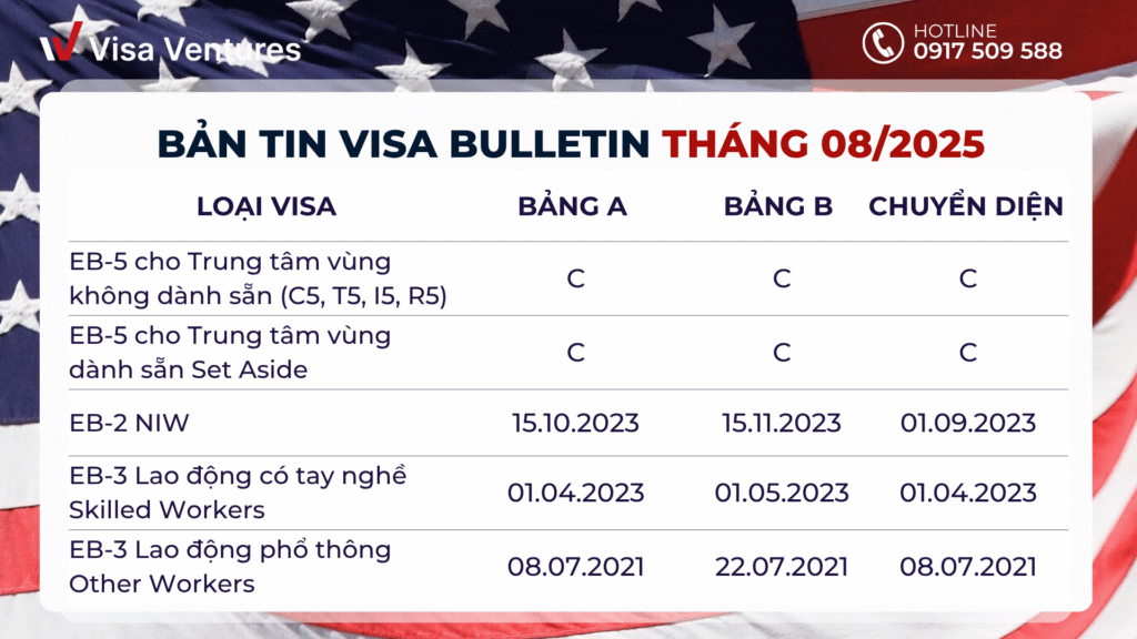 Visa Bulletin tháng 8/2025 vừa chính thức được công bố, tiếp tục cho thấy bức tranh không mấy khả quan đối với nhóm visa lao động định cư Mỹ như EB-2 và EB-3 dành cho công dân Việt Nam. Tuy nhiên, điểm sáng vẫn thuộc về diện đầu tư EB-5 khi Việt Nam tiếp tục…